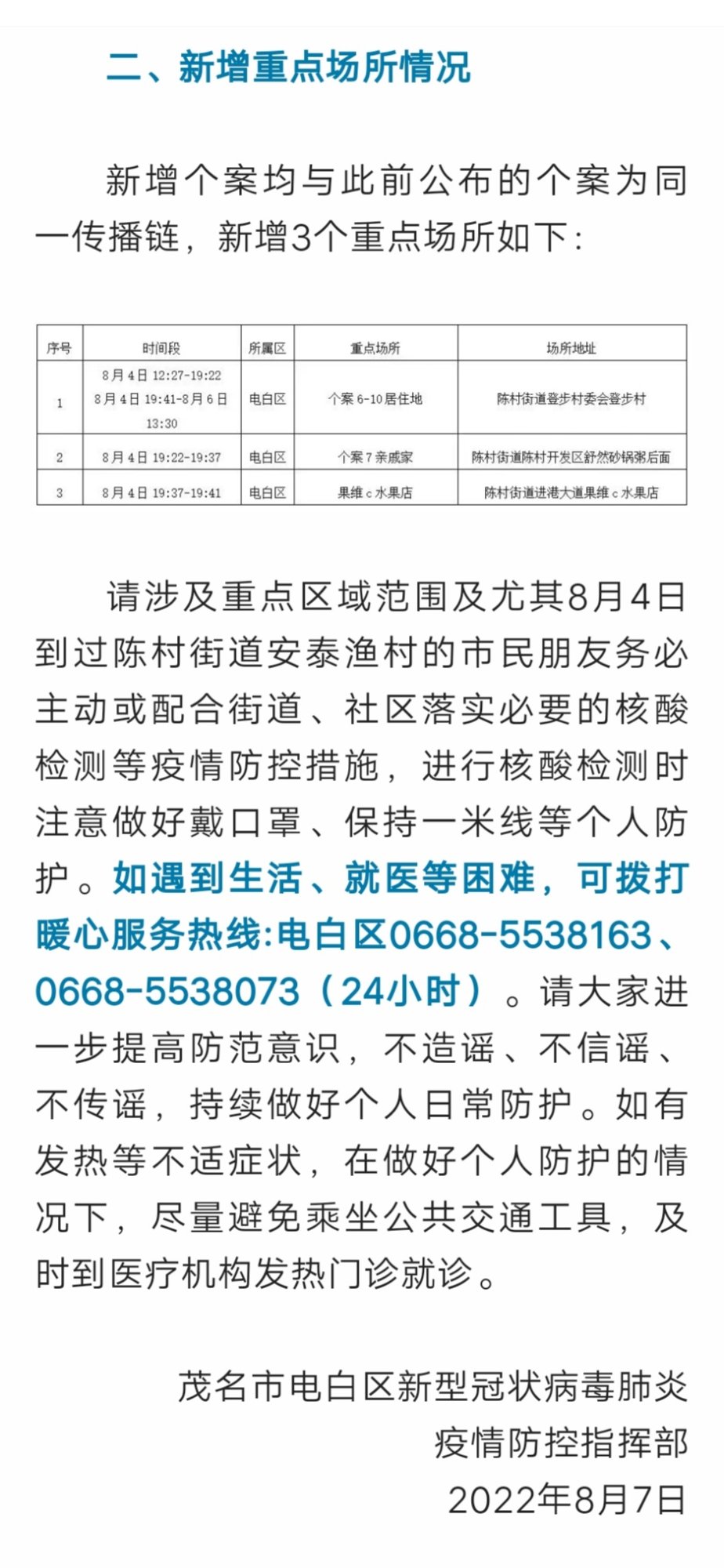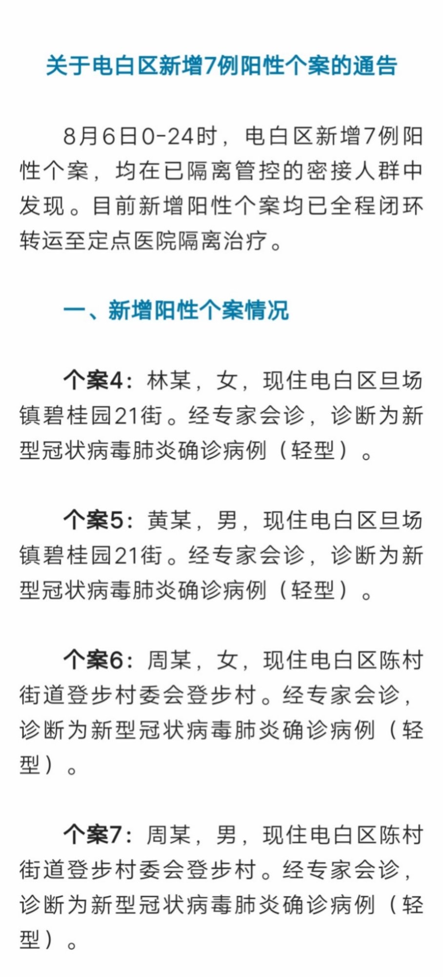转帖 电白新增7例阳性个案通告