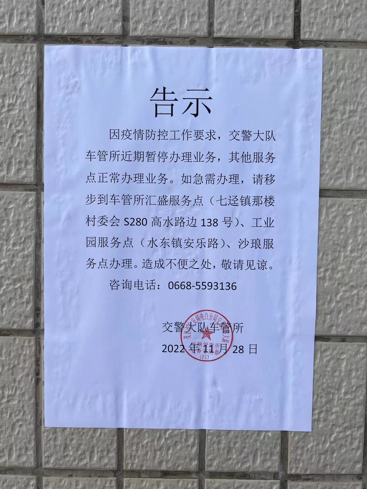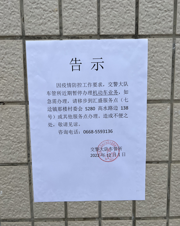 电白交警大队车管所以疫情防控为由,