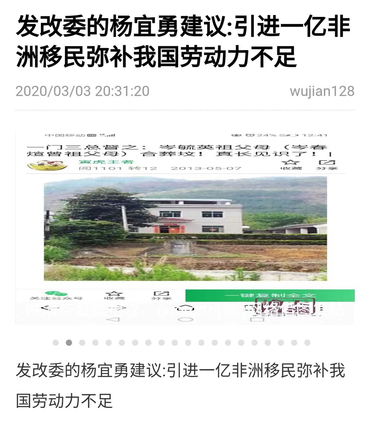 胡汉三 说: 浏览附件367620 工人工资这么低了,还有那么多人没工作,还要引进黑奴。真是他妈的操蛋社会。 点击展开... 我很好奇,一个2020年3年3日的自媒体标题转发上来是什么意思?2020年3月你知道中国在做什么吗?