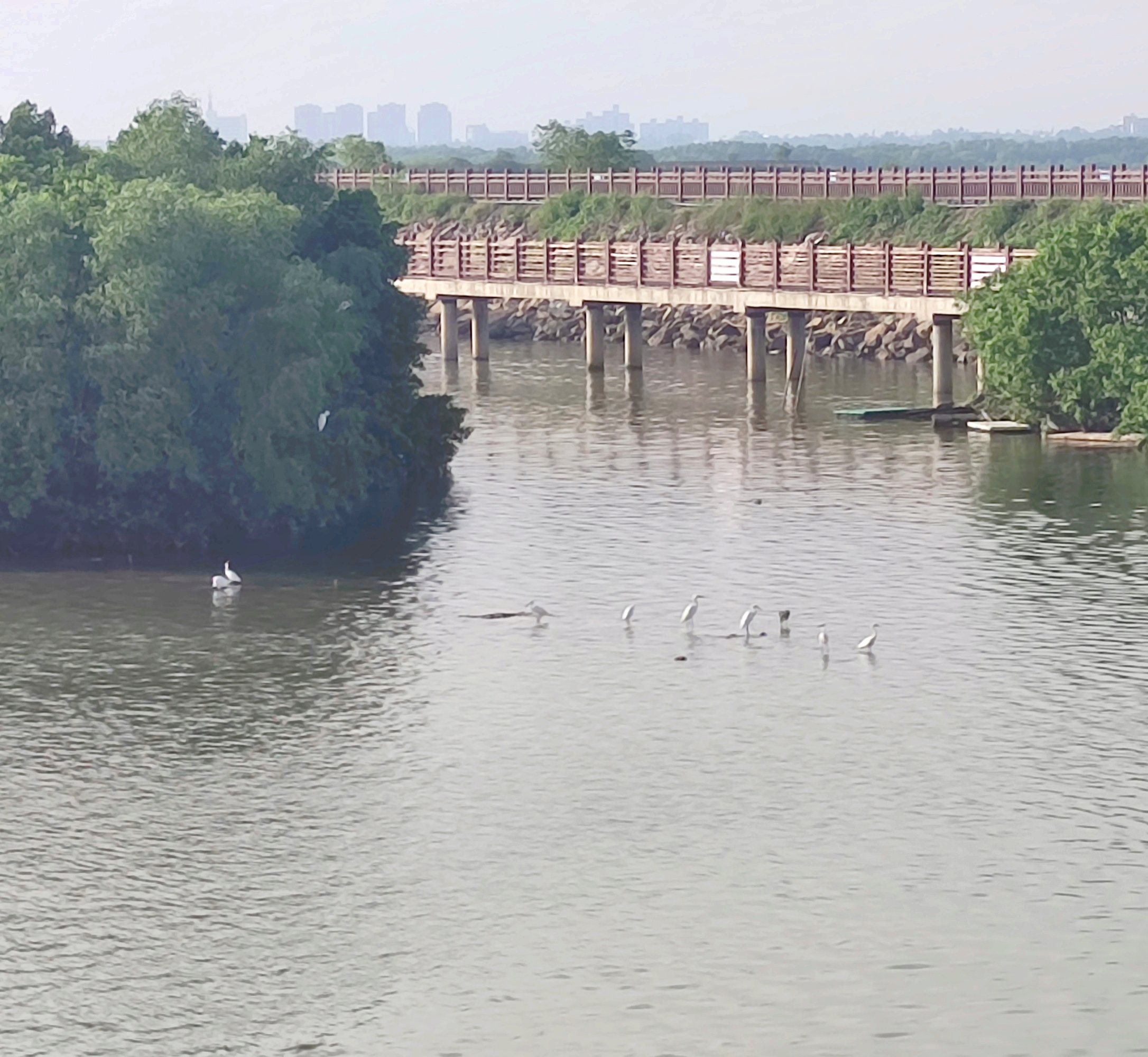 其实那个什么观鹭阁这边的排水出囗下面,清早有时也有好些白鹭等鸟类在飞来飞去嬉戏觅食等等…