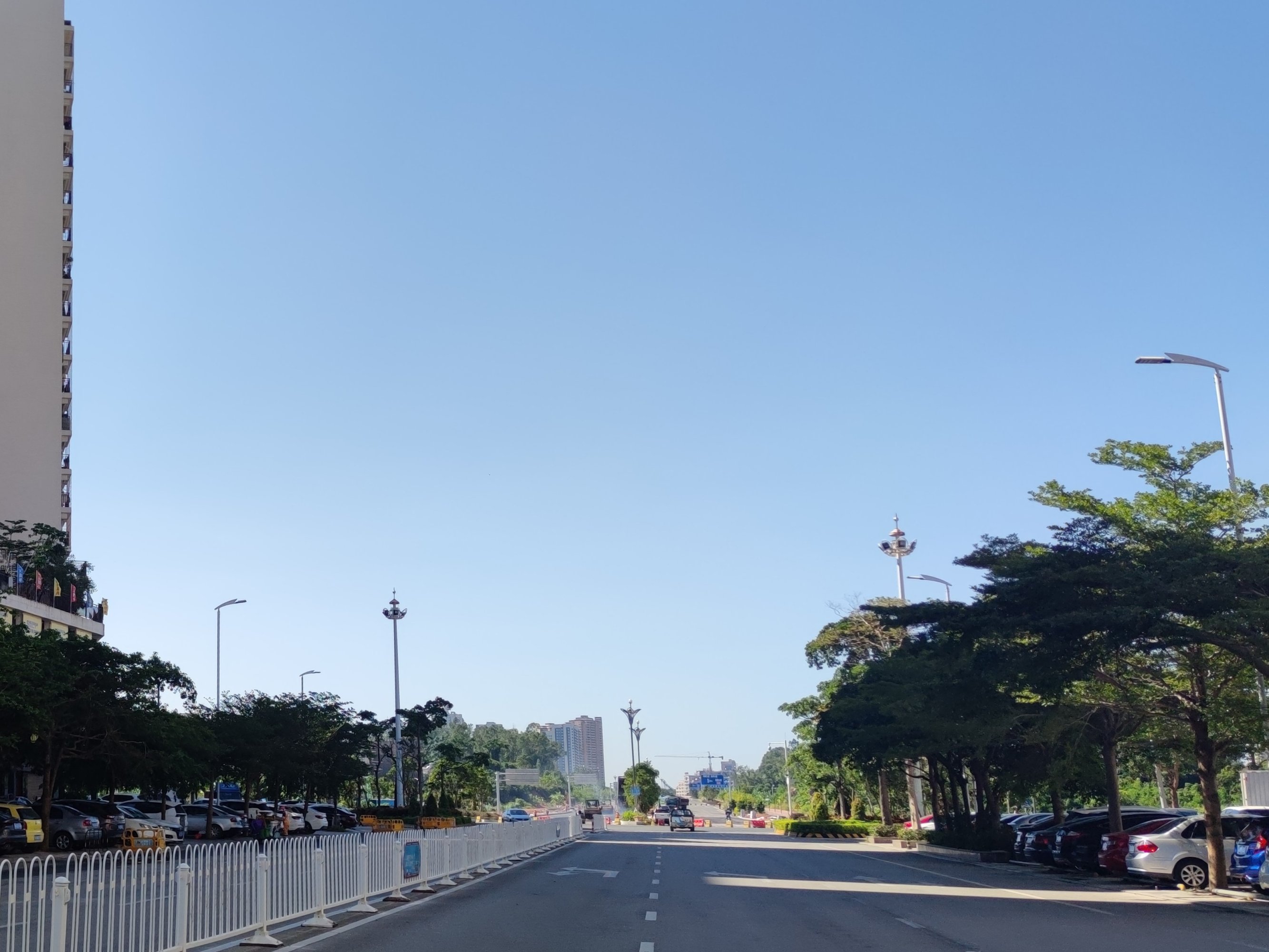 特意骑电摩从向洋大道那边向这边看去,远远见到海滨大桥与远处的三馆等…