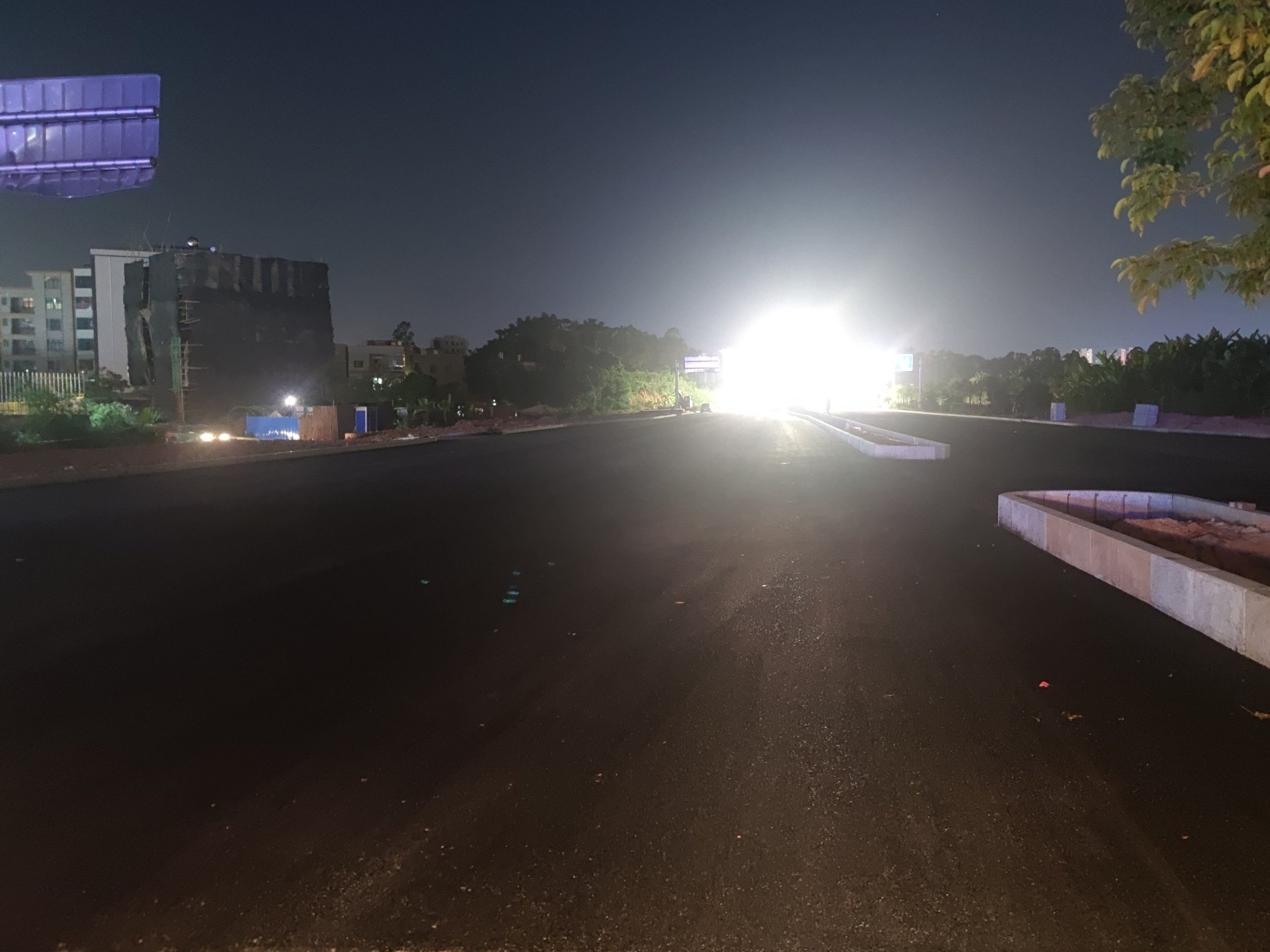 今睌再去途经一下,路囗还有围栏,我放好电摩在路旁,走进去看下,开了手机闪光灯,好像铺设沥青机械已退场,诂计等路面的沥青风干后,还要规画好路面行车线等…,那一段连接海滨大道的路灯像也还没安装等…,还有就是前面的海堤路与海滨大桥的十字路口处与走向325国道的凤凰大道与海滨路处已安装了交通灯,而与这边隔的这么近,不过对于交通要道的十字路口一般都会安装的吧
