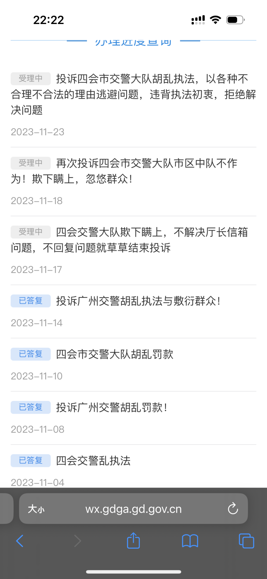 11月8日,向厅长信箱投诉广州交警乱罚款。