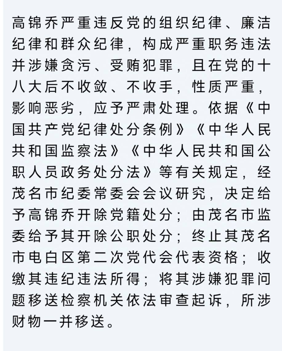 日前,经广东省纪委监委和茂名市委批准,广东省纪委监委驻省生态环境厅纪检监察组和茂名市监委对茂名市生态环境局原党组书记、局长李康严重违纪违法问题进行了纪律审查和监察调查。