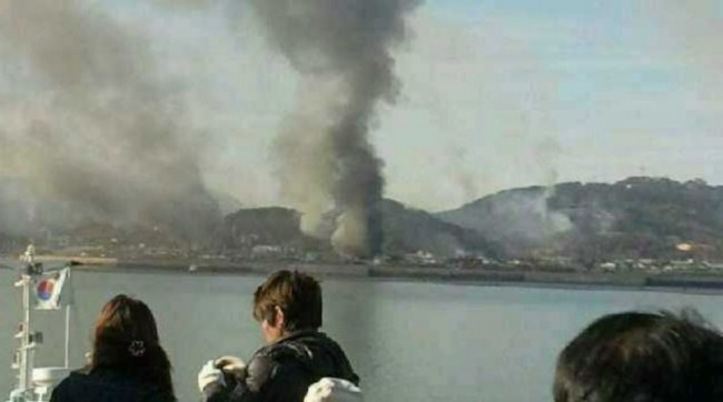 新华网快讯:据韩国YTN电视台报道,韩国西部海域的延坪岛23日下午遭到来自朝鲜的数十发炮弹炮击,数十座建筑和住宅受损或起火,韩国军方进行了回击。