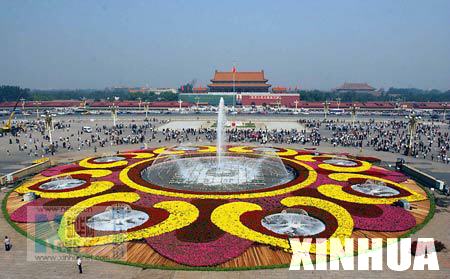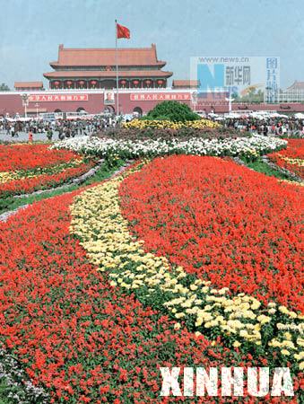 百彩纷呈,景色壮观,图为天安门广场中央的大花坛,