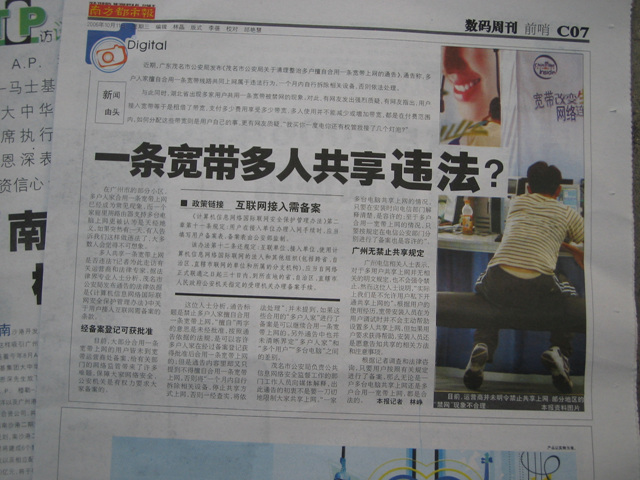 2006-10-11《南方都市报》报道一条宽带多人上网不违法