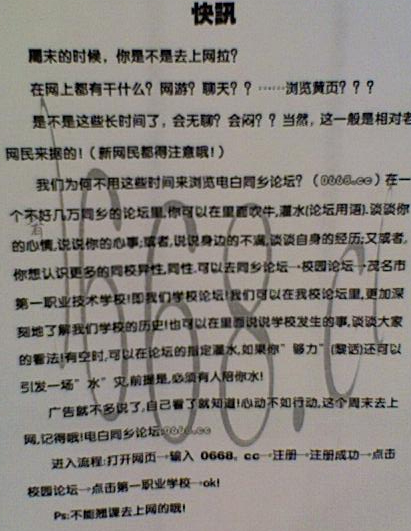 06年就快过了。06年,论坛有很多风雨。模仿网络上的贴,整成这贴。大家觉得缺少什么,就补充点吧。论坛需要你的参与才更完美。 有一种报纸叫虚假 来自主题 昨晚茂名日报编辑记者与市民面对面(图), 小女孩认真看党报,强 啊!http://0668.cc/index.php?showtopic=65162