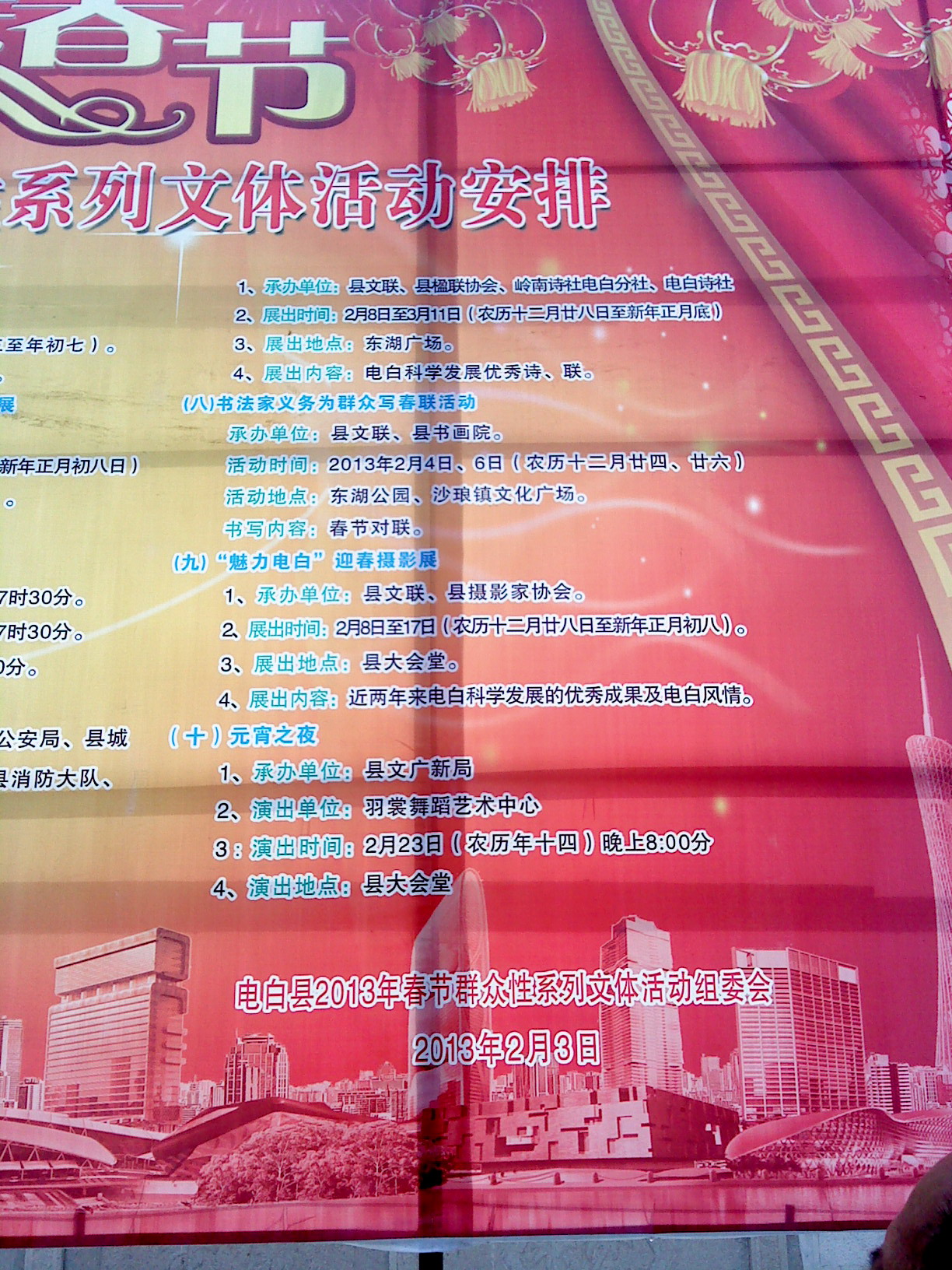 电白县2013年春节群众性系列文体活动安排,横幅 (1人在浏览)