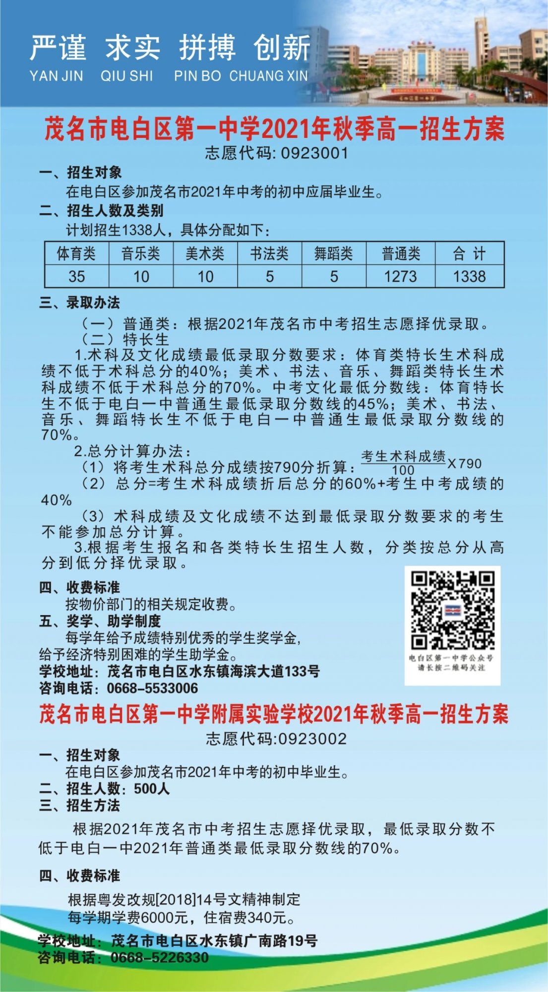 电白一中2021年秋季高一年级招生方案