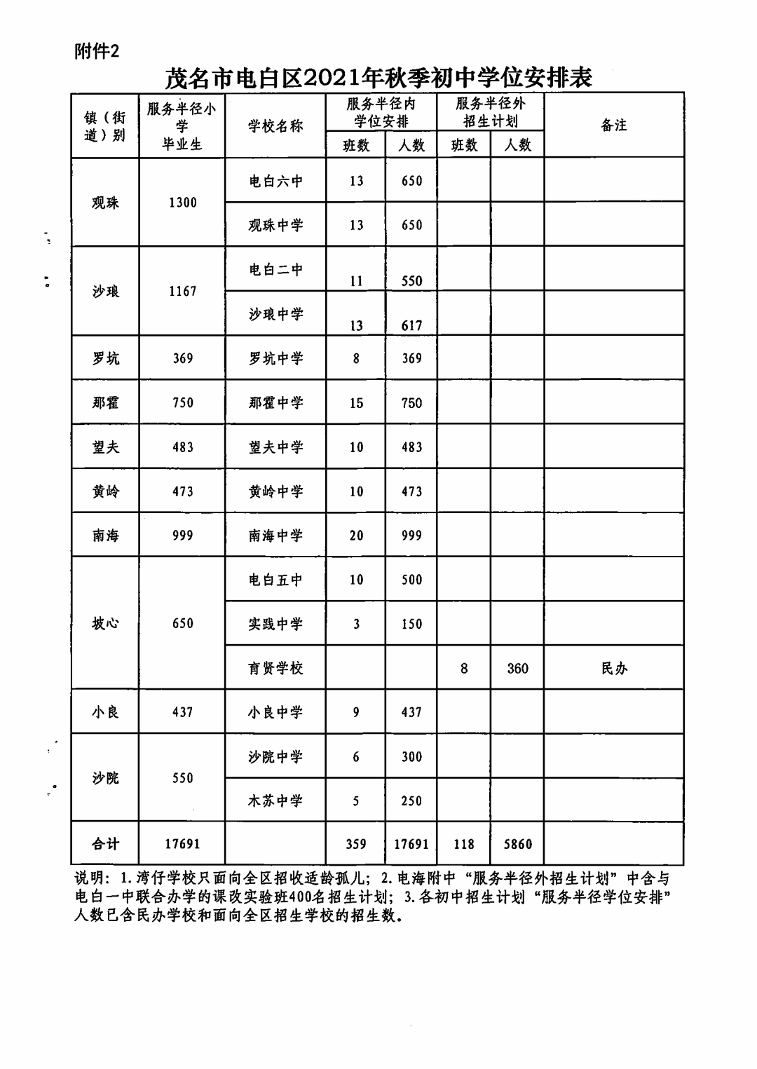 关于做好茂名市电白区2021年秋季中小学招生工作的通知