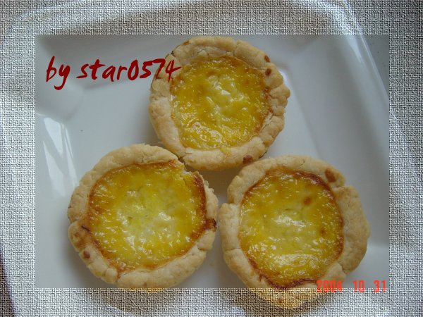 2.把面粉过筛,加入(1),拌匀。然后将制成的蛋塔水过滤,倒入塔皮中