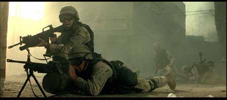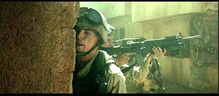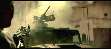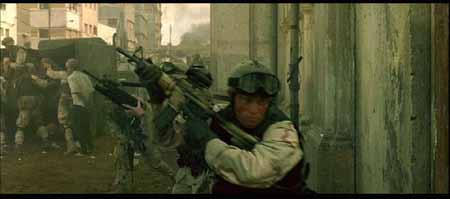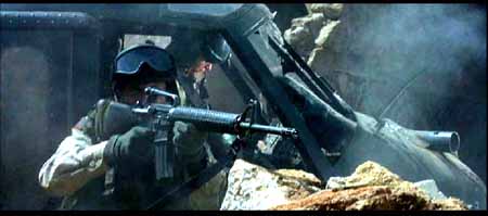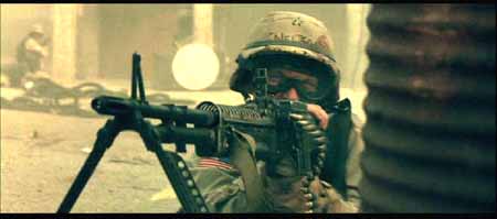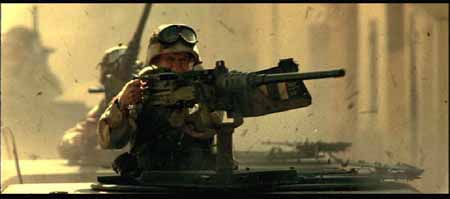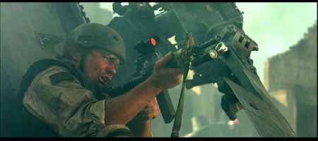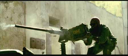 其实电影中的美军车队还少了一样重要的武器,在很多关于那些战斗的记载资料中(包括BHD的原著)都有提及到MK-19自动榴弹发射器,也叫榴弹机枪――像机枪一样把40mm榴弹倾泄出去。当时的美军车队多次被索马里民兵和平民组成的人堆挡在路中,就是全靠M2HB和MK19的夹击火力在人堆中撕开一个个出口才得以逃生,不至被后面紧追而来的埃迪德“正规军”撕成碎片,但如果将这种血腥场面照搬上银幕,恐怕会有损“世界警察”的光辉形象吧,估计就是出于这种原因电影中就少了MK-19这种重要的道具。