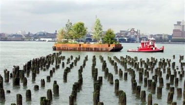 Recently, The USA. artist Robert conceptualize the "Floating Island. Now, in the hudson river, "Floating Island" tour around Manhattan. Island can move? It may surprised somebody. Haha, Precisely, it' a flat barge covered with soil, trees, shrubs,led by a tugboat. So, If you take by it, you must obviosly be in island which can float and move. Below, four of the photoes can express that has so wonderful feelling in the "Floating Island". Whenever Dianbai has one barge like that?