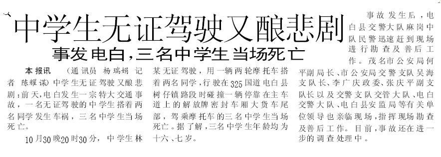 中学生驾驶摩托车出大祸 (2人在浏览)