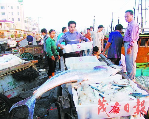 博贺渔港是广东十大渔港之一,每天清晨渔民从深海捕鱼归来在该渔港的鲜鱼市场批发,吸引了众多省内外的商人前来采购。