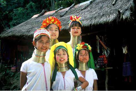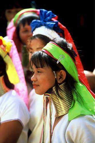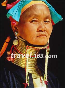 长颈族是缅甸土产的少数民族,族中女人以颈长为美,这些与众不同的长颈女都是克扬族人,是缅甸克伦族的一支。游客大多是从西方国家来的,他们兴高采烈地打量着她们,拍上几张照片,然后就心满意足地离开了,根本不想了解一下这个少数民族多灾多难的历史。