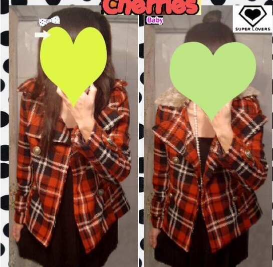 • 『 格子★当道.≥、红黑白杂色混搭经典格子带皮草外套 (220$).jpg
