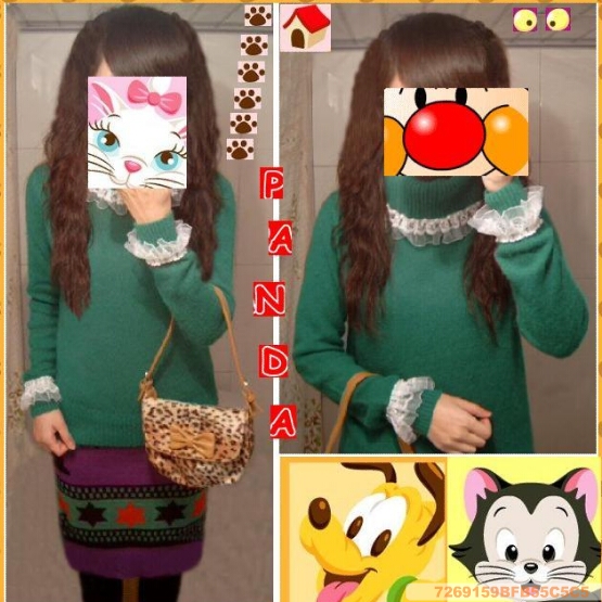 • 绿色蕾丝珍珠兔毛高领毛衣 (150$).jpg