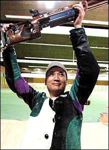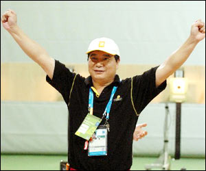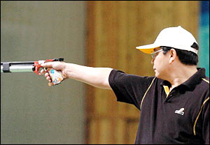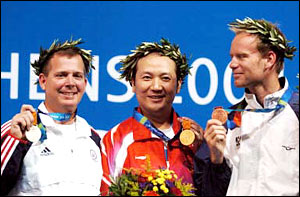 雅典时间8月14日15点11分,中国选手王义夫以690环的总成绩夺得雅典奥运会男子10米气手枪冠军,并创造了新的奥运会记录。这是中国代表团的第二枚金牌,也是雅典奥运会的第二枚金牌。这样,中国选手包揽了雅典奥运会的前两枚金牌。