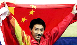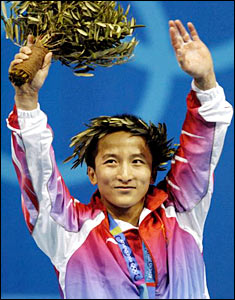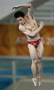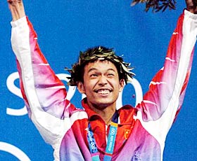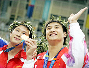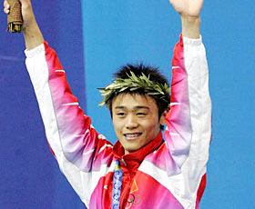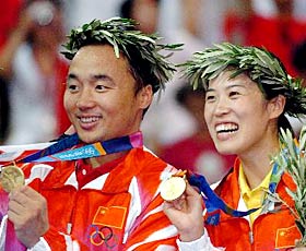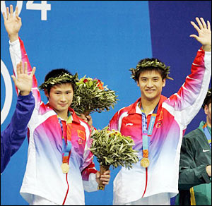 雅典当地时间8月14日23:10分,在奥运会今日的跳水比赛中,中国选手田亮/杨景辉不负众望,以383.38的总成绩夺得男子双人十米跳台冠军,为中国代表团赢得第四枚金牌。