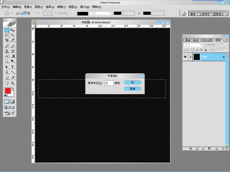 我们运用选择工具,修改―平滑,数值20,可以自己调整!!