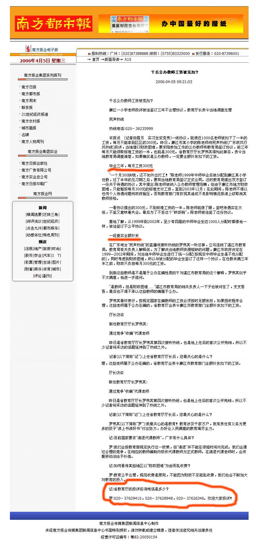 为什么在腾讯教育的http://edu.qq.com/a/20060405/000005.htm和在南方网的http://www.southcn.com/news/gdnews/gdzw/zwlb/jy/200604050055.htm说法有这么大的出入!!难道南方网里面的工作人员被电白政府收买了??看看楼主上传的和我刚才发的有明显的不同!!1