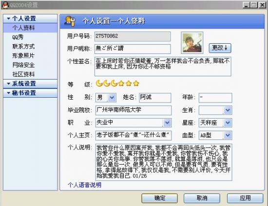 啊Ben 晨_光_飘_藐 荣誉会员 注册 2004-11-04 消息 3,150 反馈评分 1 点数 61 2005-02-25 #79 我的另一个QQ 附件 3245465123.jpg 9.4 KB · 查看: 407