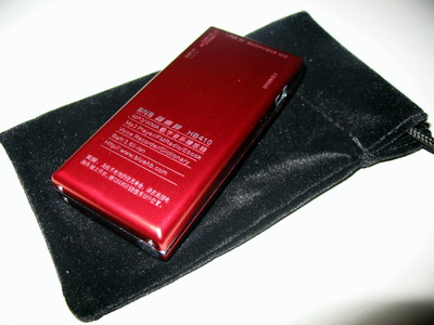 在外观方面,这个机子采用了红色为主调颜色,非常吸引。在主面板上,分别划分出两个部分,分别是控制和显示两个部分,而整体都构建在一块镜面设计的玻璃上,其显示部分采用了OLED显示技术,实现了光芒四射的超高亮度显示,采用这样的显示器件,有效地增强了显示的效果以及精度,摆脱了液晶显示器对比度低,颜色单调等缺点,使视觉效果有了进一步的改善。按键方面,采用最先进的触摸屏技术,使机子的操作更加流畅舒适。在机子的顶部,安装着两个音频接口,其中一个是线路输入,而另外一个是耳塞输出口,在耳机接口旁边,还有一个很小的开口,这个就是这个机子的麦克风部分。这个机子与电脑沟通的USB接口,被安排到机子的左侧,与它相对的右侧安排了两个开关,分别是锁机键和电源开关(也是充电控制开关)。所有按键以及接口的说明和机子使用的注意事项都放到了机子的底部,并且用非常精细的工艺把它做成外凸文字,这样的做工在MP3里面是非常罕见的,笔者自问使用了超过100台的MP3,这样的制作工艺还是头一次见到。[attachmentid=4764]