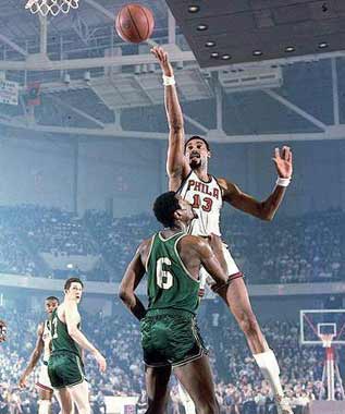 历史上最伟大的中锋,单场100分,50个篮板,这是现在一只球队都不容易达到的成绩;平均每场50分,25个蓝板,也许只有乔丹、奥尼尔们敢在梦中奢谈。一个是NBA中防守中锋的始祖,巴克利、马龙们毕其一生所追求的戒指,他却用两只手都戴不完。这两个人均是传说中的人物,他们给人们留下的那一串串天文数字是任何人都望尘莫及的。两人的每次对抗总是吸引着无数人的目光,只是美中不足的是,最强的矛虽然总能略胜最硬的盾一筹,却无法推翻球星云集的凯尔特人王朝。但在那个时代,只有他们彼此才能过上几招,高手的寂寞使他们产生了另类的友情。退役后,虽然性格窘异的两个人没有成为那种亲密的好朋友,但是却经常可以听到他们惺惺相惜的赞美对方