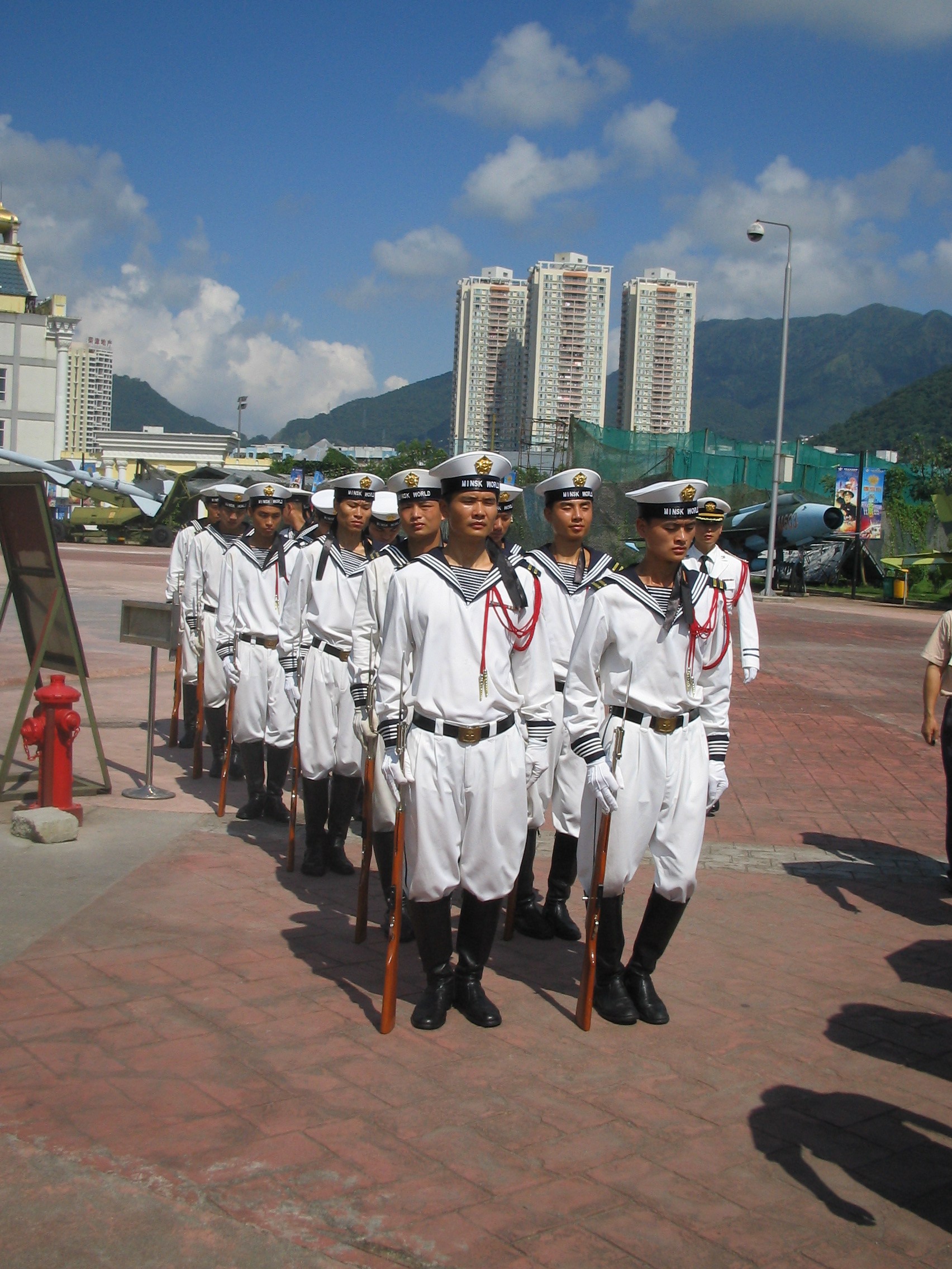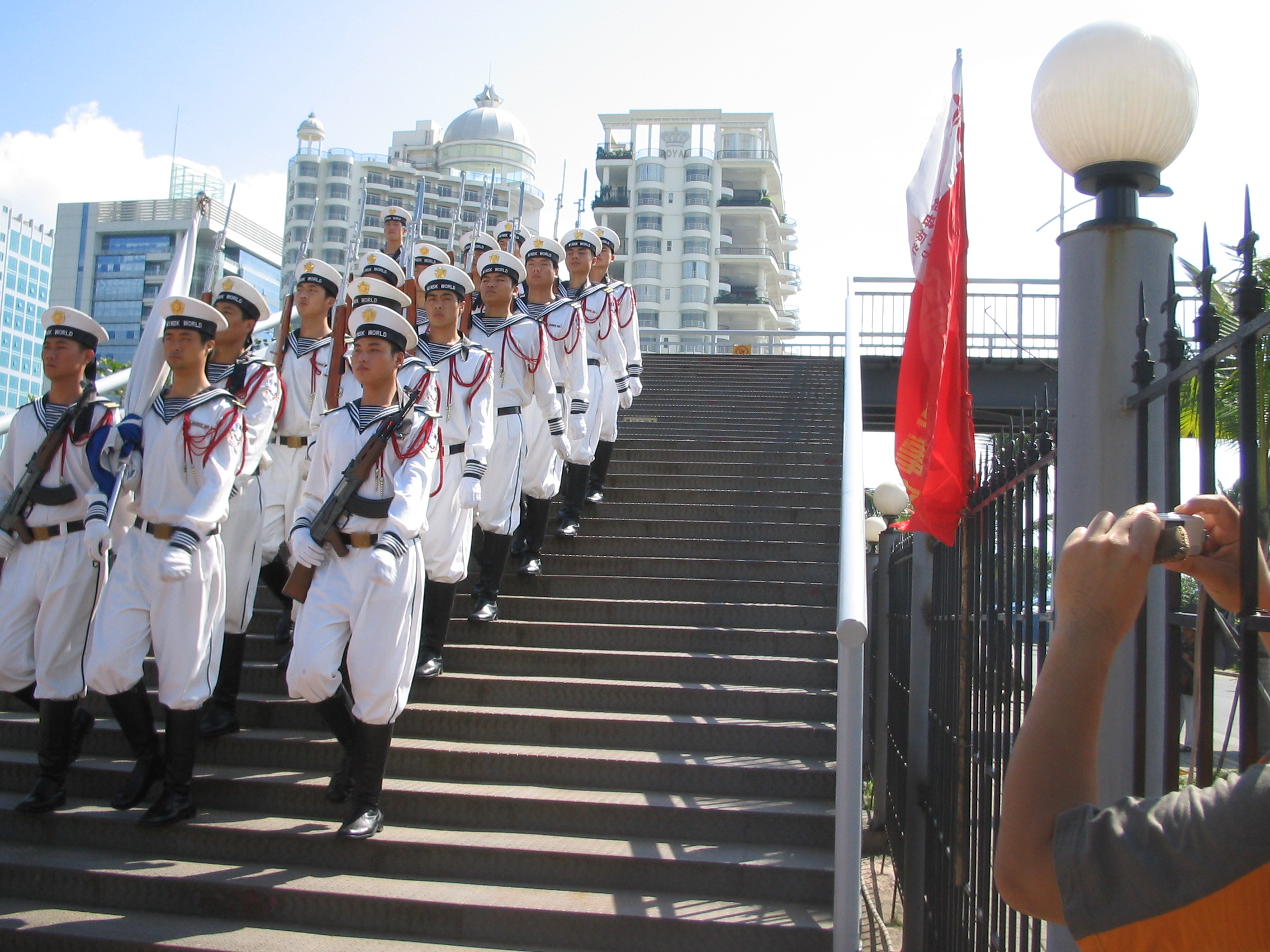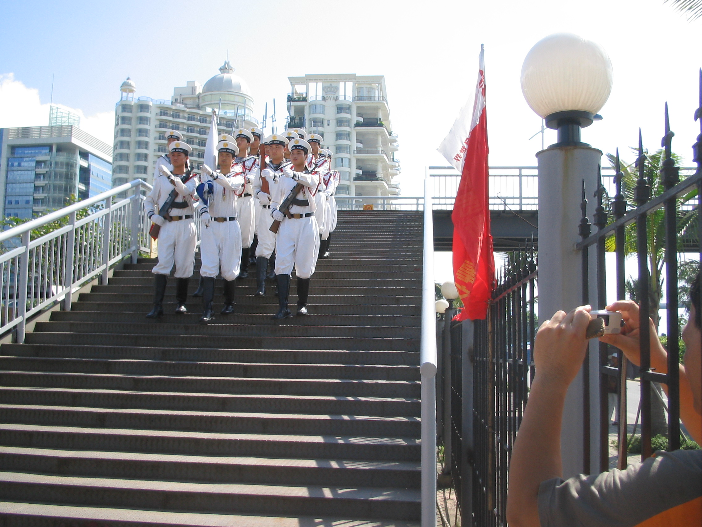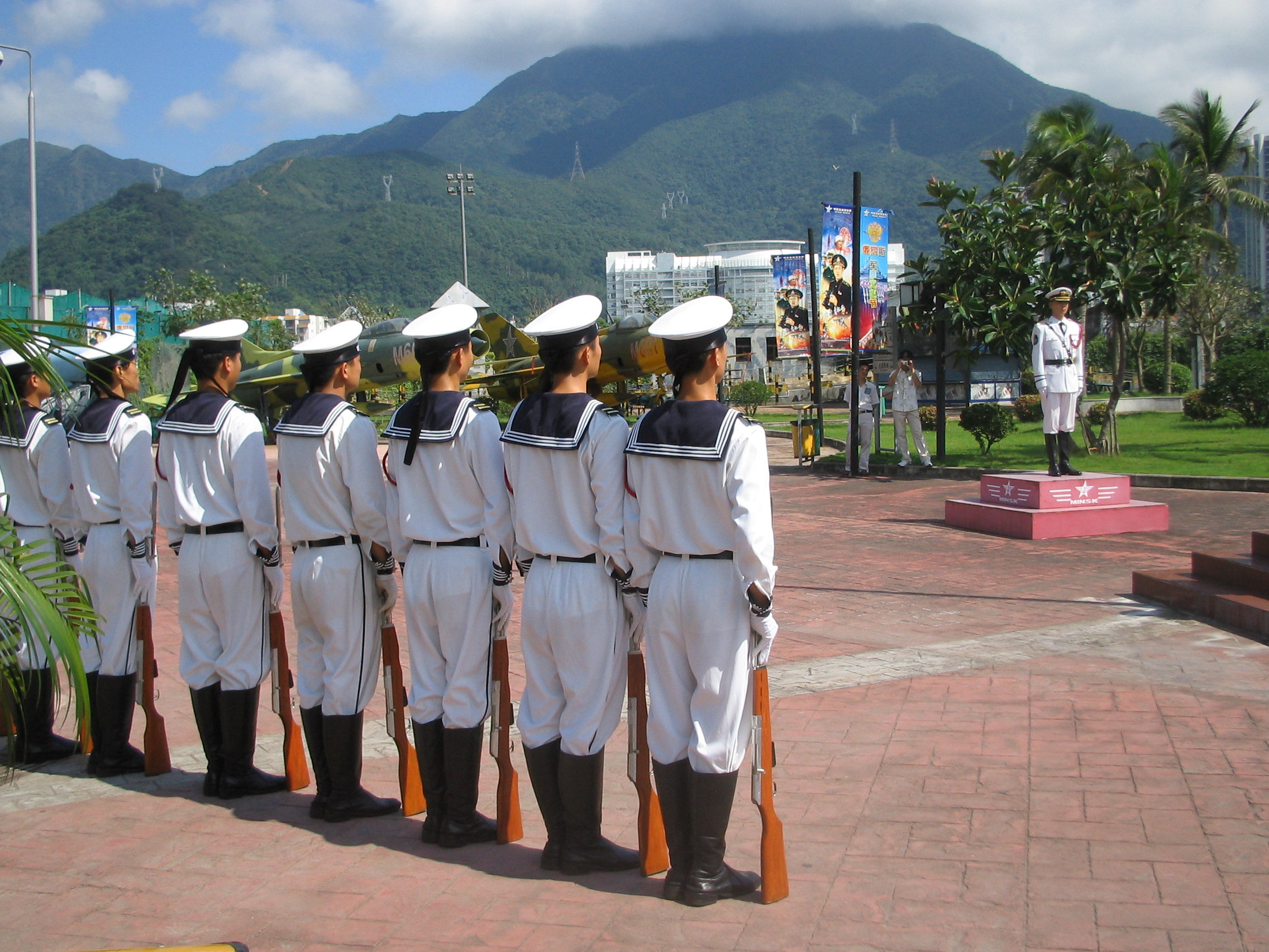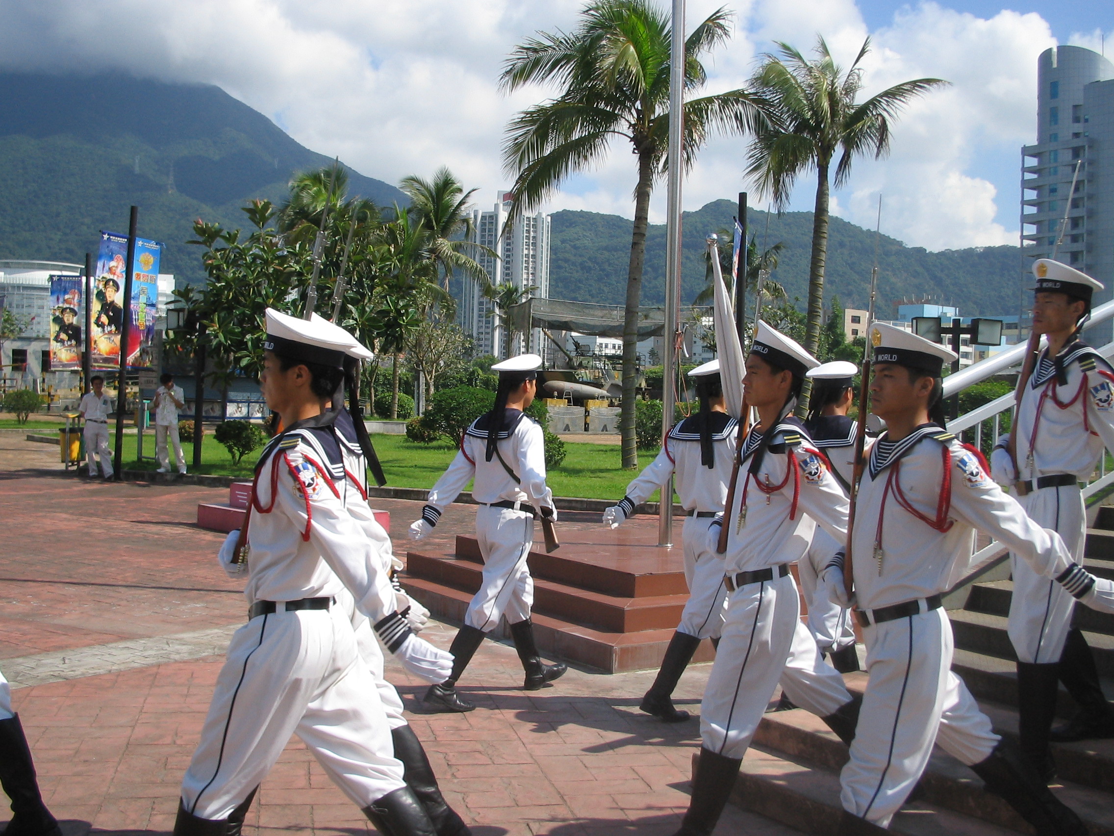 起航仪式,海军仪仗队升旗。