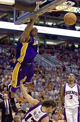 NBA官方揭晓了2005-06赛季最佳阵容的评选结果,纳什领衔第一阵容,入选的还有湖人队的科比-布莱恩特,克里夫兰骑士队的勒布朗-詹姆斯(前锋);达拉斯小牛队的德克-诺维茨基(前锋);迈阿密热火队的沙克-奥尼尔(中锋)。姚明入选第三阵容。