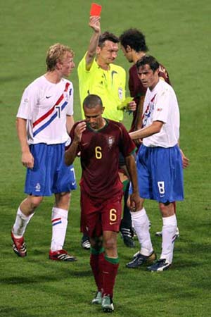 新浪体育讯 葡萄牙1-0淘汰了荷兰,比比赛场面本身更值得关注的,是比赛中频繁出现的火爆场面,以及4张红牌的世界杯单场红牌数纪录,而16张黄牌的纪录,也平了2002年德国对喀麦隆一战的“成绩”,主裁判伊万诺夫全场出牌共20张,也是一个纪录,同时,在本场比赛之后,本届世界杯在还有12场比赛没有打的情况下,23张红牌,已经刷新了单届世界杯红牌数的纪录。
