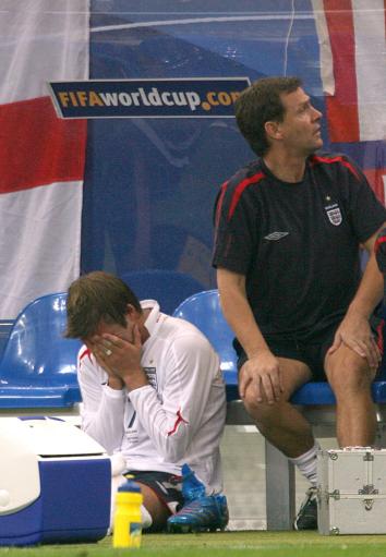 新浪体育讯 北京时间7月1日23时(德国当地时间17时),世界杯1/4决赛第3场角逐在盖尔森基兴傲赴沙尔克球场打响。葡萄牙在120分钟里0比0战平英格兰,并在点球大战中3比1胜出,继2004年欧洲杯以来再度点杀英格兰。下半时开始不久,贝克汉姆被换下场泪洒替补席。第62分钟,鲁尼被阿根廷主裁判埃利松多罚下。点球战中,葡萄牙门将里卡多扑出3个点球。英格兰1990年以来始终无缘世界杯4强。
