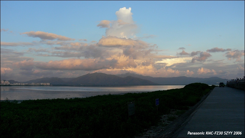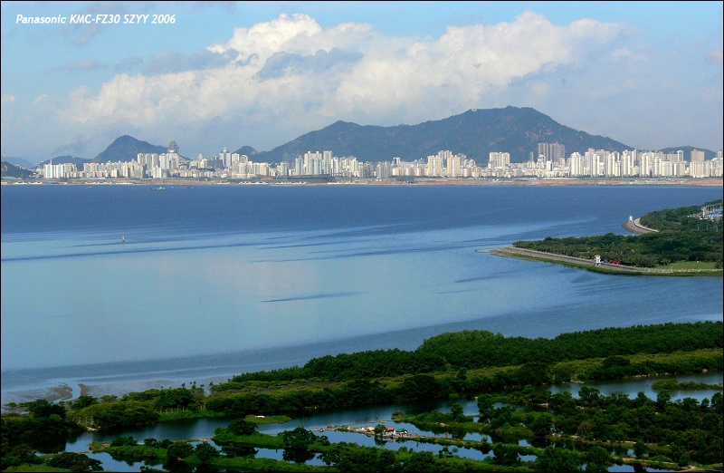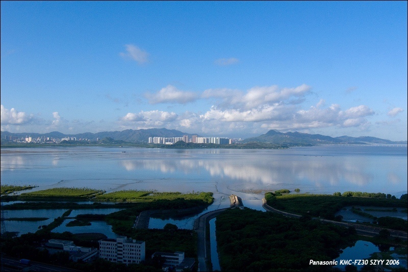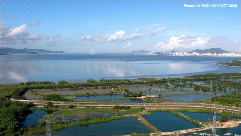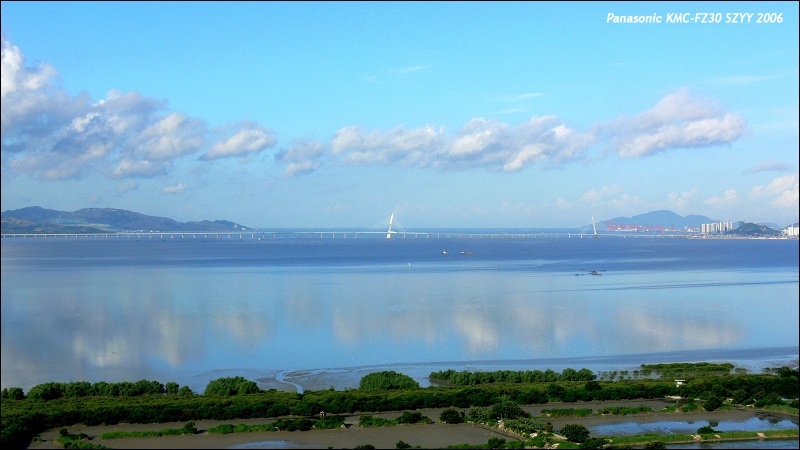深圳红树林附近,那桥是刚建设好的深港大桥。