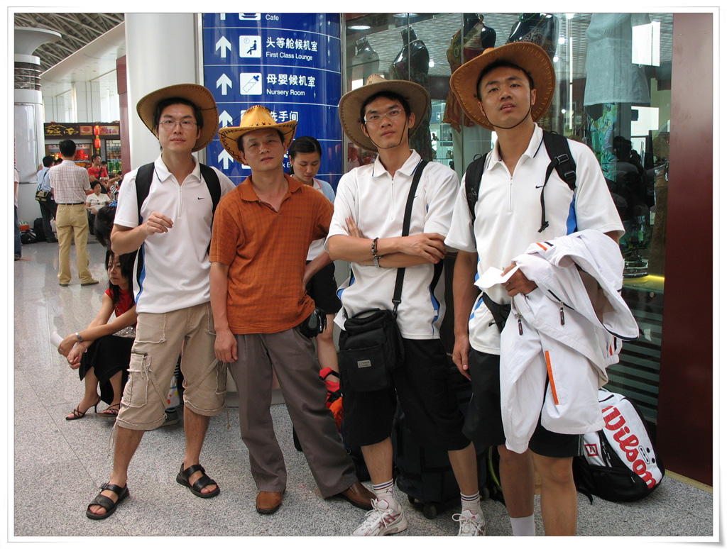 15日17:30分,成都机场,四位队友打扮成四川民工,等待登机: