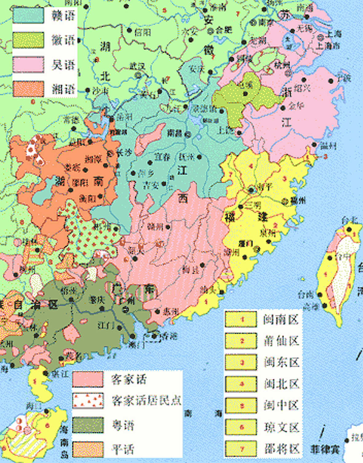 QUOTE(爱我电白 @ 2006年07月22日 Saturday, 11:51 AM) 如题 黄色部分为闽语. [snapback]1390544[/snapback] 有说:闽南语一花开三朵:潮汕、电白、雷州和海南。 实际上,阳江的有些语言了象电白话,可以交流。 但是,严格来说,阳江、电白的话和湛江话是可以看成是同一种语言,因为可以通话。但是它们和潮汕语的差别已经很大,无法交流。说是闽语,只能说语系什么的――我对这些要语了解不多,无法确定。 我查了一下祖宗,五六代以前原来是进客家话的。可惜现在已经不会讲客家话。再上溯到福建的祖宗,人们告诉我,的确是讲客家话,不是讲闽语的。连祖宗的语言不会讲了,真的很对不起祖先。