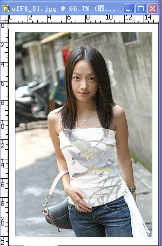 1.打开Photoshop软件,打开MM穿白衫的图片,图1