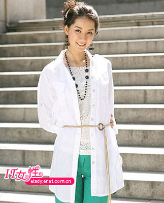 周二,纯白色系阳光清爽,绿色长裤给人带来新鲜的视觉效果