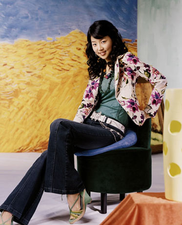 花朵外套搭配牛仔裤,简约中流露性感表情