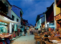 西街: ""不逛洋人街,等于没到阳朔来"。晚上9点后,美丽的西街散发着诱惑的风情,"让我们在西街快乐中毒.",艳遇、狂欢将成为我们当晚的主旋律~~~
