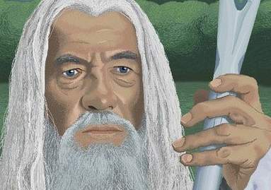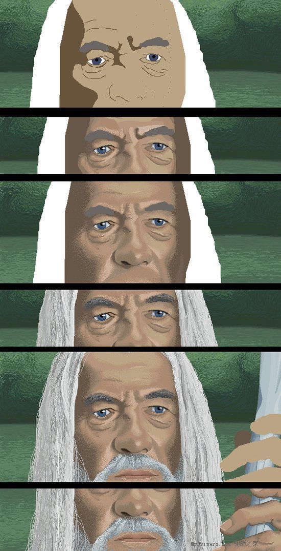 下面先来欣赏一下他这副作品中最精彩的一部分,貌似画的是《指环王》中的甘道夫