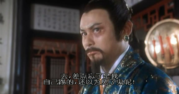《大内密探零零发》中饰演风流盲侠花满楼,刚说了一句:“混蛋,我是中原第一盲侠……哎呦~~~~”咣当,滑倒了(盲了就不要学人家爬这么高,会摔死的,老伯)。