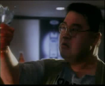 《破坏之王》中的解说员,当断水流大师兄与何金银在擂台上一动不动的对峙时,他也解说得忽而鬼影重重忽而欲火熊熊,一会儿是《倚天屠龙记》,一会儿是乩童上身,一会儿是《金瓶梅》。解说词:大师兄突然打出一招崆峒派镇山绝学,“七伤拳”,何金银不慌不忙,双掌浑圆成盾,使出乾坤大挪移,大师兄眉头一皱,计上心头,左脚顿地,大叫一声“老师公大显威力”,之后姣喘一声倒在何金银的怀里,眼如微丝,湿润的双唇,微微张开,口中喷出有如兰花一样的香气,对如此尤物,佛都会动心,何金银一手报腰,另一只手也不闲住,偷偷地从大师兄衣襟挖入,在他丰满的双峰周围任意游览,而大师兄的欲火再也控制不住了,胸前两粒亦由软的棉花糖变为硬的橡皮糖……