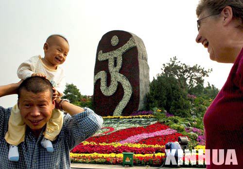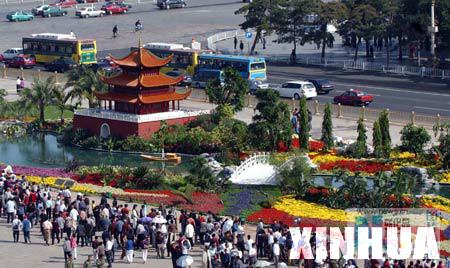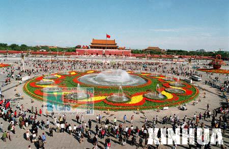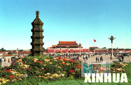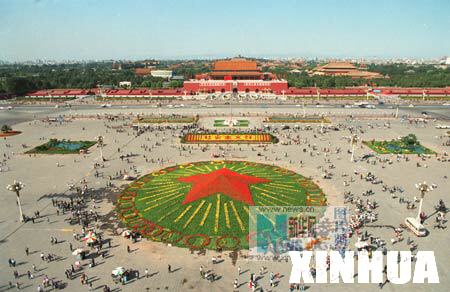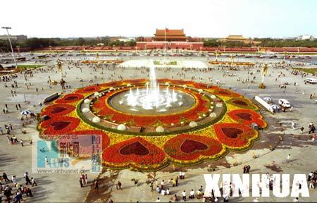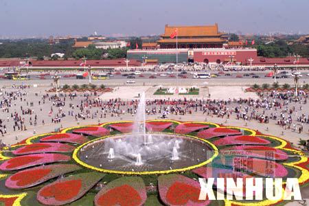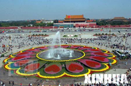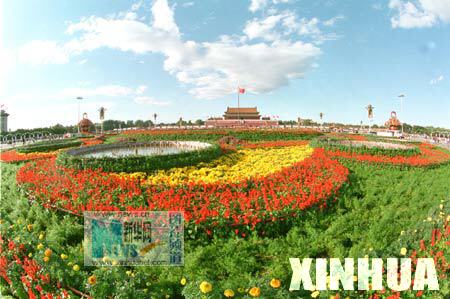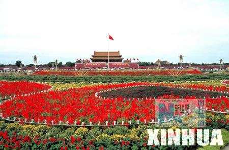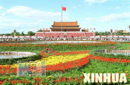 首都北京的天安门广场用数十万株花草进行一番装点。
