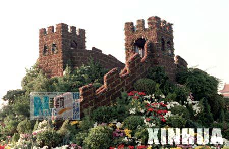 用30万株五色草组成的“长城”造型。