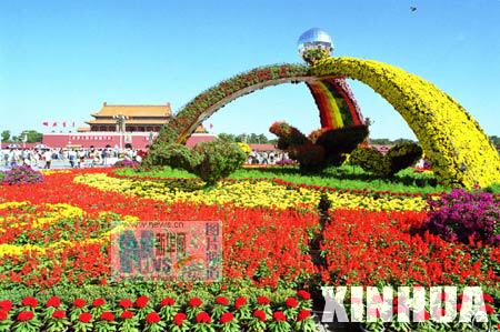 北京天安门广场被装饰得花团锦簇。