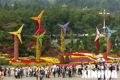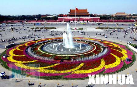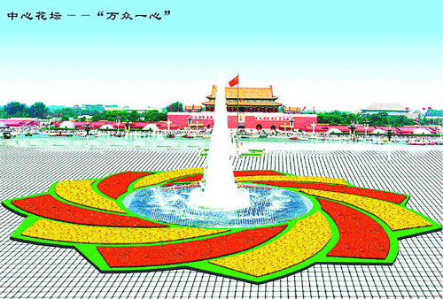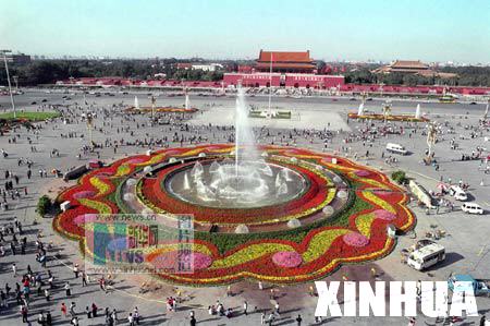百彩纷呈,景色壮观,图为天安门广场中央的大花坛,