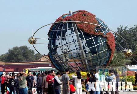 装饰了大约10万盆鲜花和13个花坛,洋溢着一片喜庆、热烈、欢乐、祥和的气氛。