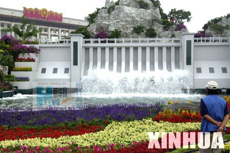 广场上用8万多盆(株)花卉组成大小19个花坛,主体花坛“二龙戏珠”。